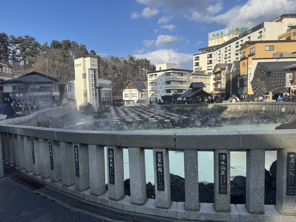 草津は久しぶりの訪問。前回は30年ほど前にスキーで行った時だと思うのですけれども、前回はとても静かな街並みだったのですが、今では多くの若い観光客で賑わっていました。夕方だと言うのに、湯揉みショーは長蛇の列。聞けば土日はこの比ではないほど混んでいるのだとか。私が若い頃は温泉なんて…などと思っていたのですが今は本当に時代が変わったのだなと思った次第です。帰りがけに見かけたJRバスも多くの若者で席がほとんど埋まっていたように見えました。